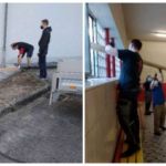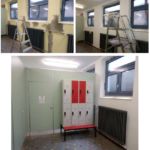 In der Damen- und Herrentoilette laufen die letzten Malerarbeiten, ebenso im ehemaligen Lehrerzimmer, das zukünftig als Trainerzimmer und Büro genutzt wird.