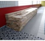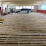 In der großen Trainingshalle sind die Renovierungs- und Spachtelarbeiten abgeschlossen und die Holzlieferung OSB-Platten, Bretter und KVH-Holz wurden angeliefert.