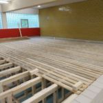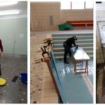 Der erste Bauabschnitt zum Umbau des Lehrschwimmbads zu einer Trainingshalle in der Dr.-Josef-Schofer-Schule ist seit dem 08.03.2021 in vollem Gang und steht kurz vor seinem Abschluss. Ursprünglich war geplant, die Unterkonstruktion zum Ausgleich des Bodenniveaus vom ehemaligen Schwimmbecken zuerst in Angriff zu nehmen, aber die längeren Lieferzeiten des Materials führten kurzerhand zu einer Umplanung. So wurde die Renovierung der Nebenräume vorgezogen.