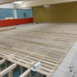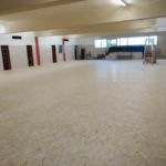 Nachdem im ersten Bauabschnitt die Renovierung der Nebenräume, Toiletten und Umkleiden durchgeführt wurde, ist nun der Ausbau der großen Trainingshalle erfolgt. Innerhalb von sieben Wochen wurde in der 12 x 23 m großen ehemaligen Schwimmhalle die Grundlage für eine neue, über 240 m² großer Trainingsfläche geschaffen.
