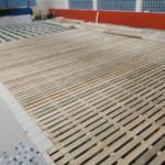 Zusätzlich erfolgte eine Niveauangleichung der gesamten Bodenfläche mit einer gebundenen Ausgleichsschüttung, damit abschließend die komplette Halle mit einem gleichmäßig ebenen Unterboden aus OSB-Platten ausgelegt werden konnte.