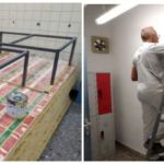 Die Renovierungsarbeiten erstreckten sich, angefangen von kleineren Spachtelarbeiten und Ersetzen von altem Wandputz über die Entsorgung bzw. den Ausbau von alten Einrichtungen des ehemaligen Schwimmbadbetriebs, bis hin zur Erneuerung der sanitären Anlagen durch die Gemeinde.