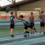 Bei der nächsten Wurfdisziplin, dem 3 Kilogramm Medizinball schocken, überraschte er mit der zweitbesten Weite von 9,20 Meter in seiner Gruppe, insbesondere sich selbst.