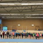 Die Trainer Lena Schipolowski und Amy Masin hatten bereits im Vorfeld einiges zu tun. Mit Unterstützung von Laura Ludwig wurde die Mittelberghalle in eine Wettkampfarena umgestaltet. Sämtliche Turngeräte wurden großzügig in den drei Hallenteilen aufgestellt.